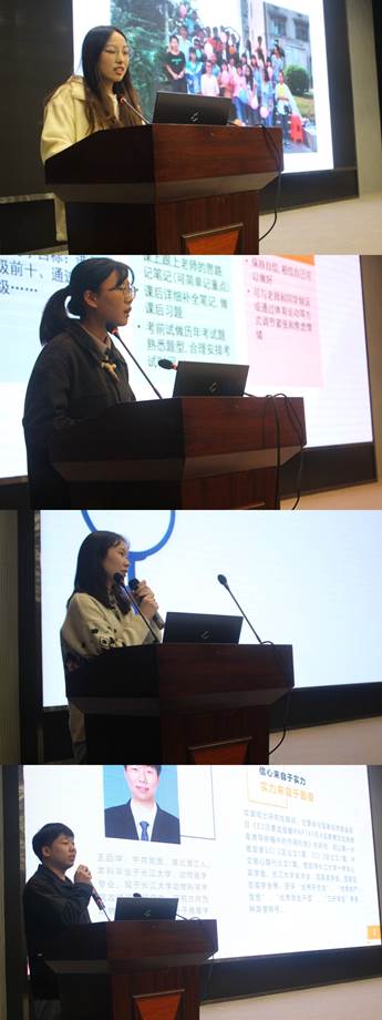 此次活动中,除去自身经历的叙述以及学习经验的分享之外,周凡婷提到了ppt制作对个人今后发展的重要性,同时她从个人总结的经验出发给在场学子分享了学习资源,希望可以帮助学弟学妹们更高效学习。随后张利凤强调了学习生活中要善于把握机会,学会掌握时间,建立自信,广交朋友。此外王后坤以“让优秀成为一种习惯”开场,他强调了在学习和工作方面要学会积累荣誉,以便为今后的评奖评优做充足准备。最后刘昕学姐就同学们十分关心的如何建立学习方法的问题,给出了一套方案:课前预习,课上紧跟老师思路,课后补齐笔记,考前做历年考题,同时也要调整好学习心态,合理宣泄情绪。有所遗憾的是张新月学姐由于实习原因未能到场,但她的卓越成绩值得我们效仿。