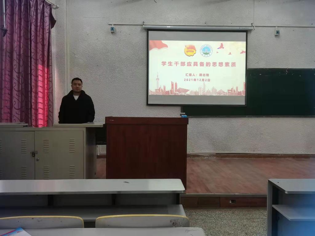 生命科学学院团委书记顾志翔以《学生干部思想素质培训》为主题夯实了学生们的思想素质基础。顾志翔老师从思想政治素质、道德素质、文化素质、心里素质四个方面出发,引导学生干部们确立坚定的理想信念,形成良好的思想政治素质,用科学的、正确的立场,观点和方法去分析问题,解决问题,善于冷静地分析、研究并解决学习生活中存在的各种思想问题。他表示学生组织是学生服务机构,一定要发挥好学生干部的表率作用,无论是从言论、目的性等方面都要树立良好的奉献意识,才能更好的服务同学。顾志翔老师的讲座充满激情,内容深刻,话语通俗易懂,逻辑严谨,讲座收到了很好的教育效果。最后以习近平主席对青年的寄语为结语,表达了对学生干部未来的期望。
