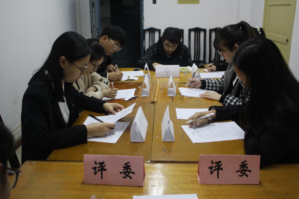 在正式开始前,评委们宣读了活动规则并分发题目及草稿纸。第一组的刘雨双率先亮明观点,提出“不忘初心,牢记使命”的活动主题,并表明自己关于选择研学场所的见解——毛主席是我们国家的伟人,由他主办的农民运动纪念馆不仅是全国文物保护单位,也是第一批爱国主义教育基地,值得每位同学实地考察,零距离体会红色过往。第三组的朱雯剖析了能力与机遇对于个人能否取得成功的概率大小,她表示,机遇总是留给有准备的人的,它只是能力的点缀,没有能力的机遇就好比摇摇欲坠的空中楼阁。第五组的邓志力总结到,腐败问题可从国家政治、思想教育、市场经济三方面入手,只有国家严惩腐败问题、人民自觉遵守道德底线、市场依法诚信运营才能最大限度地打击腐败。