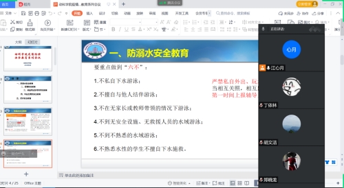 本次班会共分为5个部分,第一部分为防溺水安全教育、第二部分为疫情防控教育、第三部分为诚信考试及诚信贷款教育、第四部分为毕业生离校安全教育、第五部分为反诈安全教育。