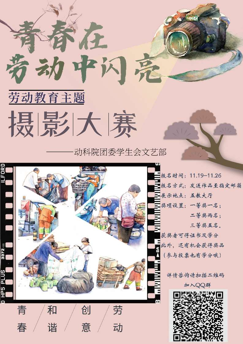 (通讯员:黄婉月 胡晓婷)劳动育人,筑梦青春。为丰富广大学生的课余生活,展现大学生的精神风貌,增强学生崇尚劳动、尊重劳动、热爱劳动的意识,太阳集团官网于11月24日至11月30日举办了为期七天的动科院品牌活动“让青春在劳动中闪亮”摄影大赛。